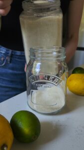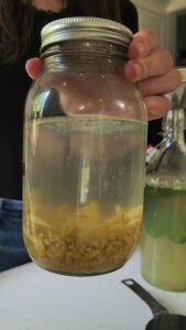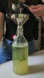 For your soda to be carbonated, it needs a few days at room temperature to ferment. The fermentation process involves the yeast and bacteria in the ginger bug to break down the sugar in your soda base to create carbon dioxide, aka the fizziness in soda! Since we’re fermenting in a pressure safe bottle, the gas will build up, so its important to “burp” your bottles once a day to relieve the pressure.
