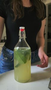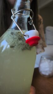 4. Let it carbonate at room temperature for 1-3 days, depending on your environment. You know it’s done when you burp your bottle and see that carbonation has built up. Chill in the fridge before serving and garnish with a lemon slice and mint!